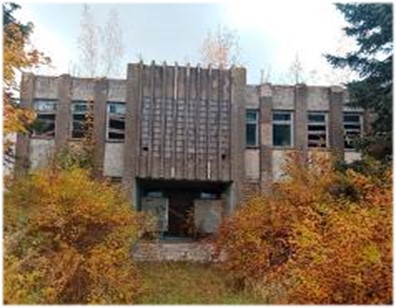здание 2 – 849,2 м2 – кирпичное двухэтажное, использовалось для культурно-просветительного и (или) зрелищного назначения, фундамент – железобетонные блоки, перекрытия – железобетонные, крыша – совмещённая, 1978 года постройки